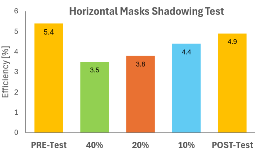 Outdoor Adaptability: In outdoor tests, vertical shading led to a 24% reduction in power output, and horizontal shading caused a 35% decrease, demonstrating the panels’ adaptability to environmental variations.